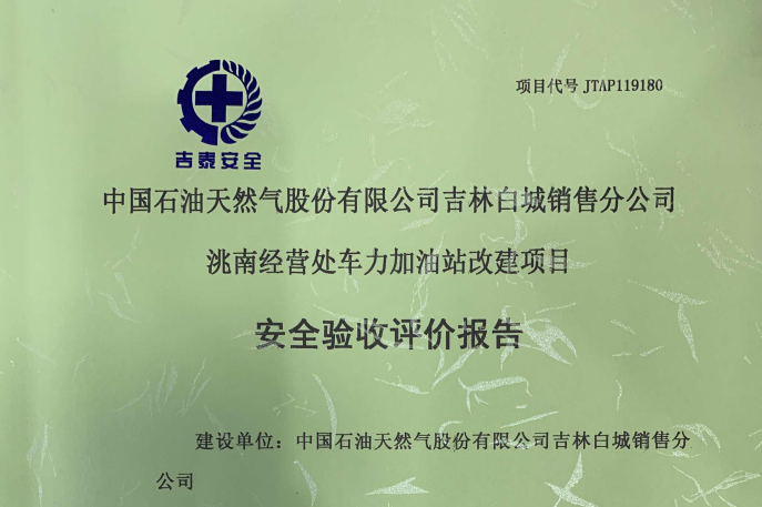 受白城市到保鎮(zhèn)高平加油站的委托,吉林省吉泰安全技術服務有限公司對白城市到保鎮(zhèn)高平...